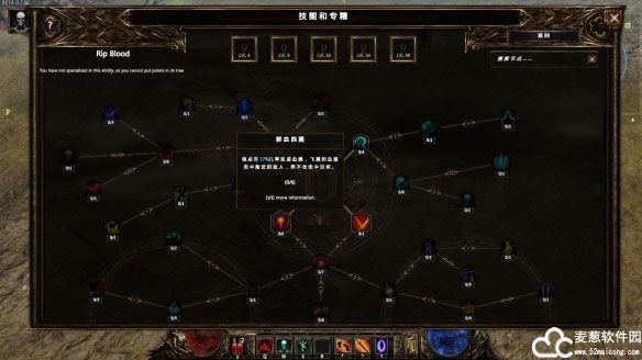 3、游戏技能:游戏中技能有精修设定(不是所有技能,当前游戏版本部分技能有精修,大多分支系技能没有精修),精修设定为选择指定的技能可以对该技能进行加点,可以根据人物等级提高带多个精修技能,不同的加点搭配会让技能产生不同的变化,例如战士的飞锤本来是回旋镖形式投掷出去的,经过精修加点可以不让其往回飞增加其伤害或通过加点可以让其投掷后围绕你自身旋转。当前版本不建议单一分支到底的加点,大多技能精通倾向于多分支加点