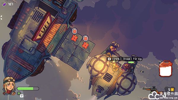 云端掠影是一款非常不错的角色扮演冒险类游戏,游戏采用的是经典的像素风格,很多的玩家一想到像素风格就会以为游戏的画质很模糊,而这款游戏却恰恰相反,游戏的画质不仅不模糊,反而非常的精致。融合了多种不同的游戏元素,其中就包含了飞行,射击,生存,冒险,动作,沙盒,模拟等诸多元素,你可以在这里享受到不一样的冒险体验。在游戏中,玩家将扮演着一个叫做伊娃的勇士,你本来生活在一个安静祥和的太空岛屿,有一天,一伙邪恶的入侵者的到来让原本安静祥和的岛屿变得不再安宁,他们在这里烧杀抢掠,并且杀害了你的父亲,为了还岛屿一个太平,以及为父亲复仇,你便踏上了一条艰难的复仇之路。由于是在天空岛屿中,所以你需要一条能够载着你和小伙伴战斗的飞船,游戏的一开始便为玩家们准备了一条非常普通的飞船,可供使用,而你需要做的就是不断的收集材料对飞船进行改造,使得飞船变得更加的牢固,拥有更强大的战斗力。