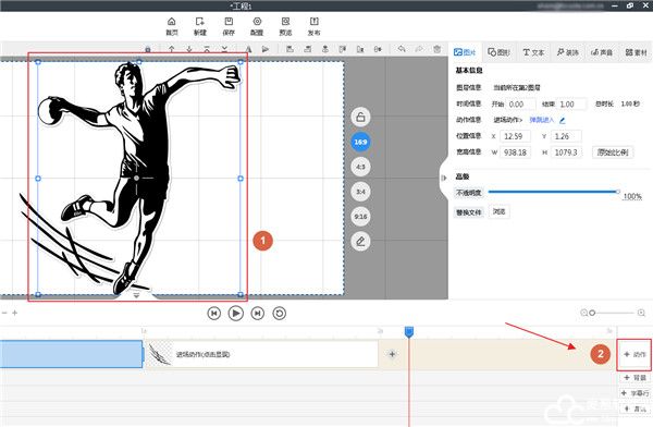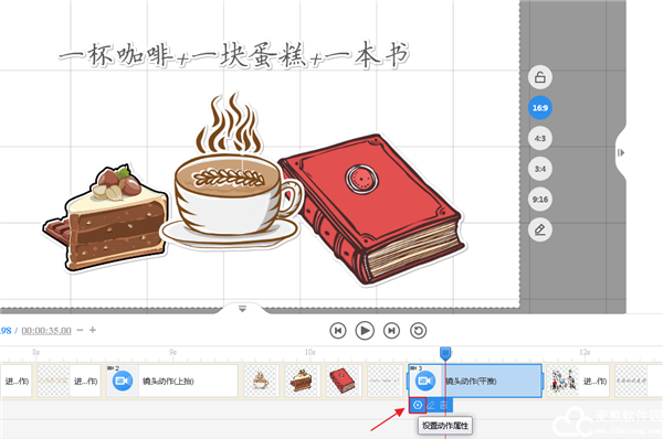 1、在时间轴右侧点击“+动作”按钮->单击选择合适的镜头动作->自定义高级选项->“确认”保存设置;