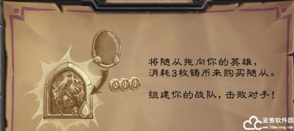 在炉石传说电脑版中,每当你进入酒馆时,鲍勃会向你展示一排可供招揽的随从。当然,你在招揽随从时必须先支付铸币,然后他们才会为你效力。招揽随从需花费3个铸币。