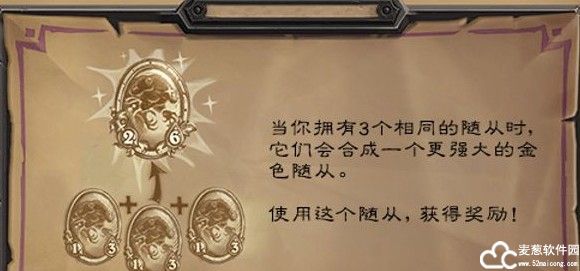 在炉石传说电脑版,招揽三个相同的随从会自动将他们融合成一个强大的金色随从,属性和效果都将显著提升。三连会保留融合之前所获得的全部增益效果。