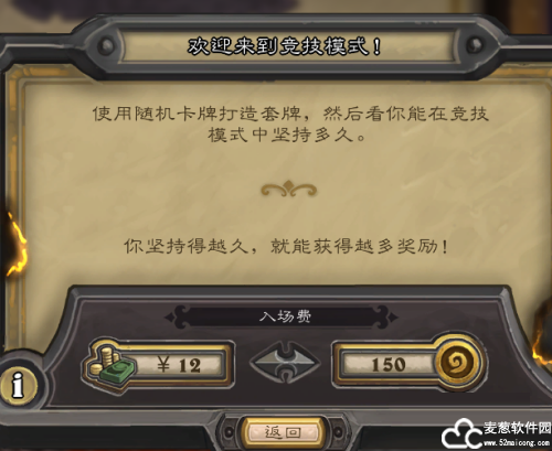 竞技模式相对就比较公平了,150金币就可以进入。然后选择擅长的职业,系统每次出现3张卡牌,选择其中一张,重复30次就构造了一副卡组。出现的卡牌是随机的,所以相对公平。不过新手打法技巧不高,基本赢不了几局,不建议打。失败3场结束挑战,最多胜12场。胜利场次越多,奖励越好。