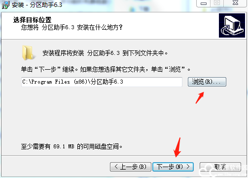 5、选择分区助手专业版安装文件夹,随后单击下一步
