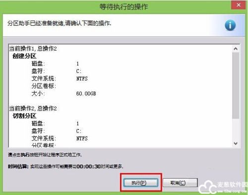 3、返回到软件主界面,我们点击界面上方的“提交”选项,就会弹出等待执行操作的窗口,我们点击执行就可以开始创建了,等到执行完成就可以看到创建的分区了