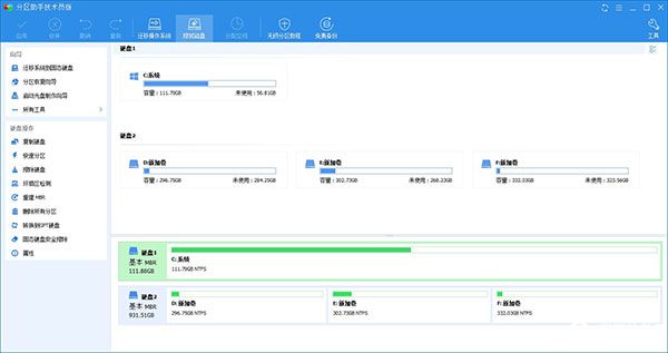 分区助手专业版支持快速分区,创建、删除、格式化分区,分区恢复,4KB对齐,数据擦除等