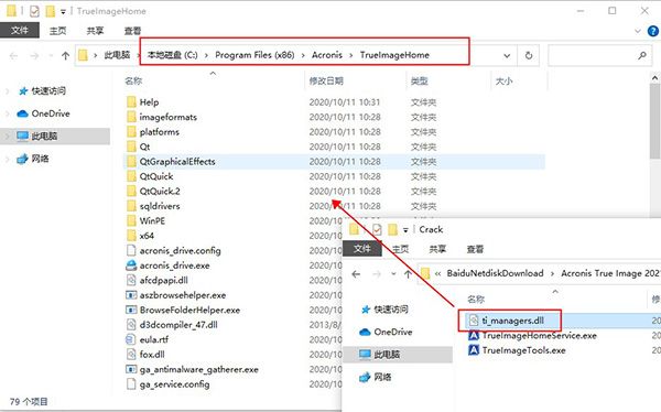 1、在本站下载解压,得到crack破解补丁和Acronis True Image 2021中文版原程序