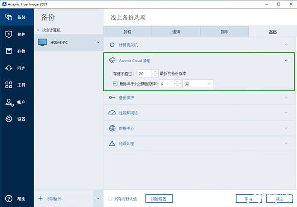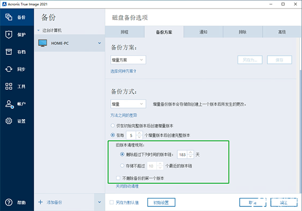 5、TI-208852 执行每个分区操作后,磁盘备份的清理设置恢复为仅存储 1 个版本
