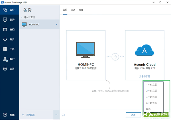 Acronis True Image 2021中文版,通过高效管理笔记本电脑备份,避免耗尽电池电量。设置最低电源级别或阻止电池电源备份