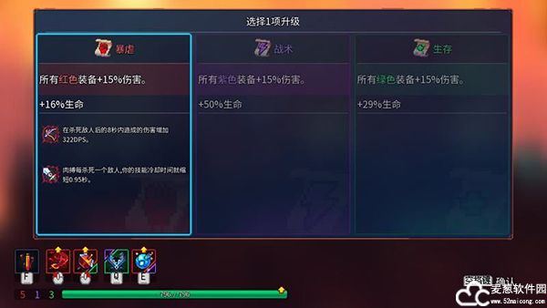 1、卷轴:死亡细胞免费版游戏,最核心的的东西就是伤害,伤害高了就能秒怪,秒了怪就不会被打,相反你的伤害不够就需要依靠闪避或者盾反来规避怪的伤害,就可能会出现失误。而卷轴就是最直接的伤害提升,一个卷轴提升15%,所以建议一定要把图跑完,不能漏掉任何一个卷轴,因为你所有的打不过的情况,都可以总结为卷轴数量不够。主点一个颜色,剩下的没有你主点色的双色卷轴,哪个加血多就加哪个