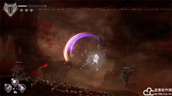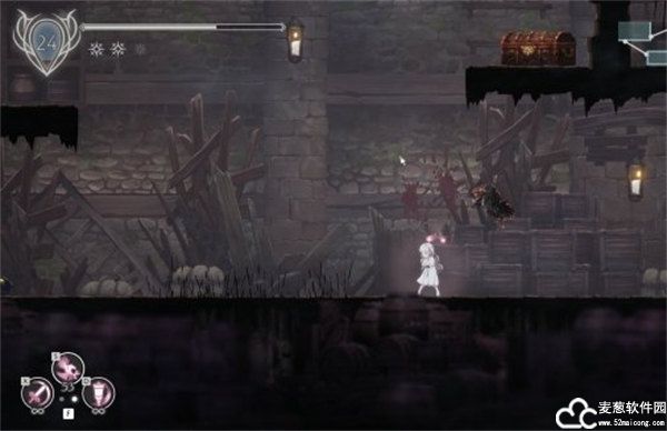 2、你最初的攻击手段是“黑色骑士”,但你每打完一个boss(不管是大boss还是小boss)你都会获得新的主动技能(到后期好像有一堆技能,但只有两组配置,每组配置只能带三个技能),除了平A以外,其它主动技能都是限制次数和CD的,但是可以通过击打地图中的红色花朵/保存点回满。除了这些主动技能,还有流程中的被动技能(二段跳等等),所以当你发现一个区域内有到不了的地方,不要着急,继续往前走,后面会有让你到达前面到不了地方的被动技能的