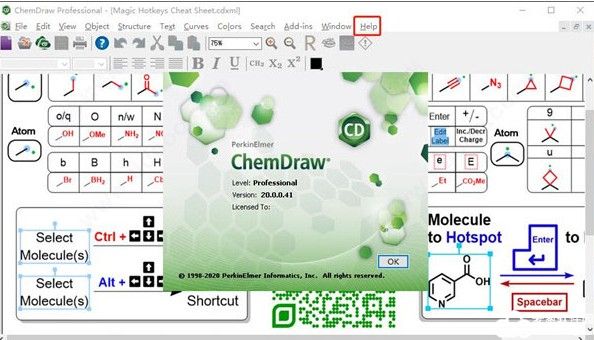 16、双击打开ChemOffice Suite破解版软件,点击Help下的About,如下图软件破解完成,可以放心使用软件