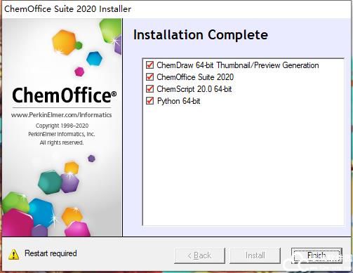 9、chemoffice2020安装完成,安装向导会提示完成软件安装向导,取消勾选,点击Finish