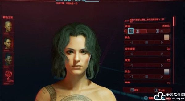 2、捏脸数据:皮肤颜色:2、皮肤类型:04、发型:12、发色:墨绿色(第二排最后一个)