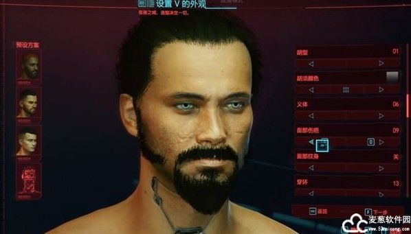 下巴:10、耳朵:10、义体:06、面部伤疤:关、面部纹身:关、穿环:关、牙齿:03、