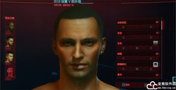 7、皮肤类型 05、发型 29、眼睛 05、眉毛 0鼻子 05、嘴巴 06、下巴 03、耳朵 14