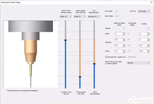 Cimatron15汉化版的刀柄和夹持的控制和预计算—— 通过一个新的动态对话框刀柄和夹持的安全以及参数的计算得到了极大的改善。用户可以控制使用考虑或忽略使用哪种计算方式和哪种精度来进行计算。更直观的理解和更直观的控制不同的参数来计算出更好的刀路轨迹