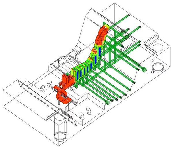 3、使用专业工具添加斜顶、镶件、顶出系统、冷却系统、浇口和流道等