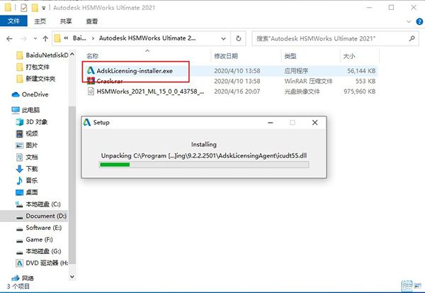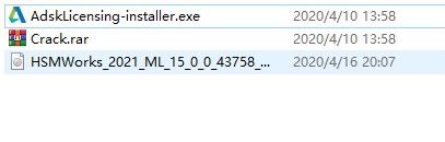 1、本站下载解压,获得Autodesk HSMWorks Ultimate 2021破解版安装包、注册机和AdskLicensing文件