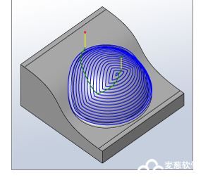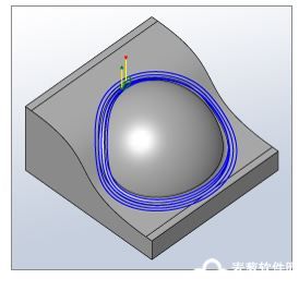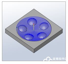 螺旋加工从给定的中心点创建螺旋刀具路径,在给定边界内加工时产生恒定的接触。非常适用于圆形浅部件,使用最大40度的刀具接触角,以及更多垂直面的轮廓通道。要加工的细节的中心点是自动定位的,或者可以由您确定。该策略还支持工具接触角