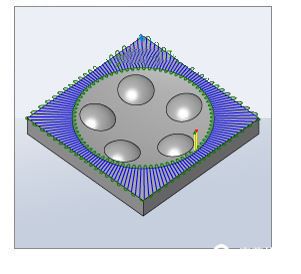 与螺旋加工一样,径向加工也从中心点开始,为您提供加工径向零件的能力,可以选择在径向通道中心之间停止,它们变得非常密集。要加工的细节的中心点是自动定位的,或者可以由您确定。该程序也可以与刀具接触角一起使用