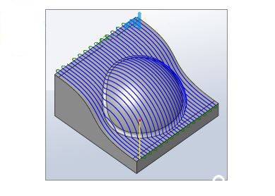 平行通过是最广泛使用的整理策略之一。这些通道在XY平面中平行并沿Z方向跟随表面。平行通道最适合浅区和下铣。为了自动检测浅区域,可以将加工限制在刀尖和表面之间的最大角度。通过选择向下铣削选项,可以在加工复杂曲面时最小化刀具偏转