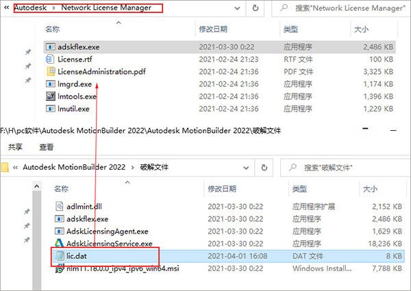 1、将本站提供的文件下载解压,得到Autodesk MotionBuilder 2022破解版原程序和破解文件夹