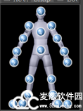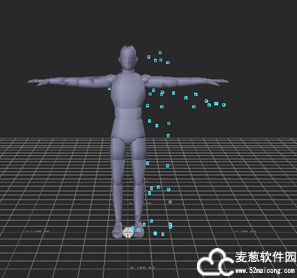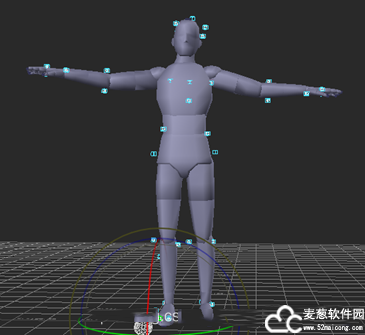 4、在Autodesk MotionBuilder 2022破解版,调整点与Actor,使两者一致。点通过底下的白球操作,可以平移旋转,注意不要缩放。往往Actor比c3d点大,通过缩小Actor对齐。先调节臀部,因为臀部可以带动整个身体的运动,调整之后