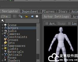 如果不小心双击了navigator里的点导致看不到下方的面板的模型,可以通过Navigator-Actors-Actor选回去