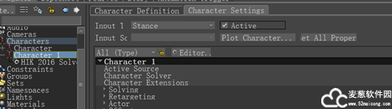 13、Navigator-Characters——Character,勾选active ,因为我导入过两次模型所以这里有两个character