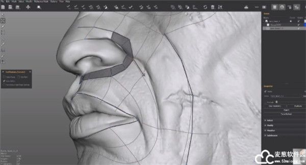 4、右边的界面主要是对高模还有低模的图层显示,方便高模和低模的隐藏,还有增加了强大的自动拓扑,高模提取,减面等用来快速增加拓扑的工具。