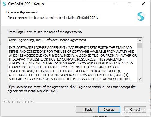 2、之后双击SimSolid-Setup-2021.0.exe主程序进行软件安装,并勾选我同意协议按钮