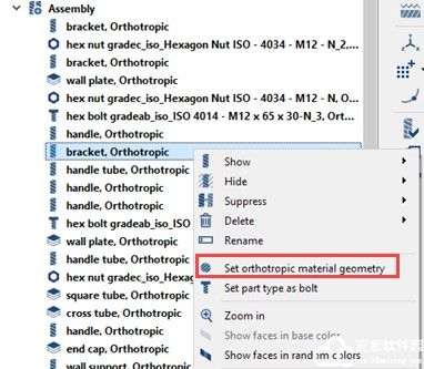 可以在上下文菜单中为中的选定零件定义正交各向异性材料装配工作台