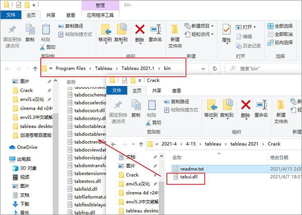 1、在本站下载解压,得到Tableau Desktop 2021破解版原程序和crack破解文件夹