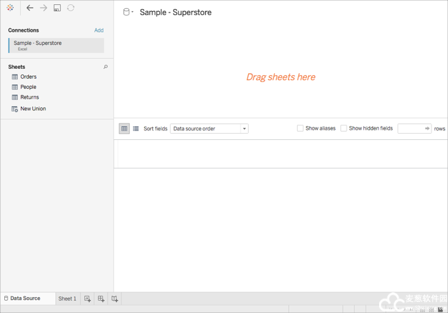 此页面名为“数据源”页面,您可在其中准备要在Tableau Desktop 2021破解版中使用的位置数据。