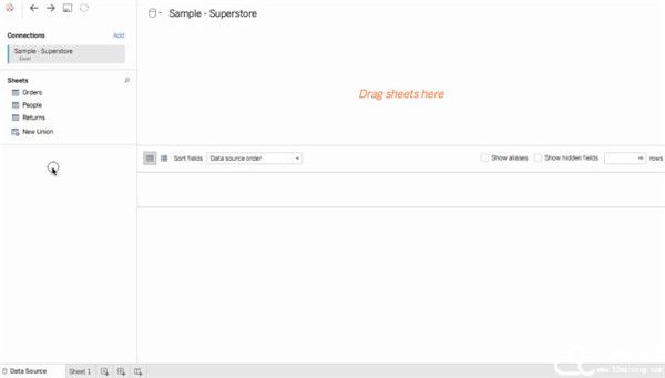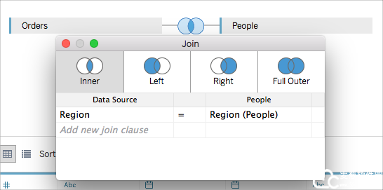 对于此示例,您将联接 Sample-Superstore 数据源中的两个工作表