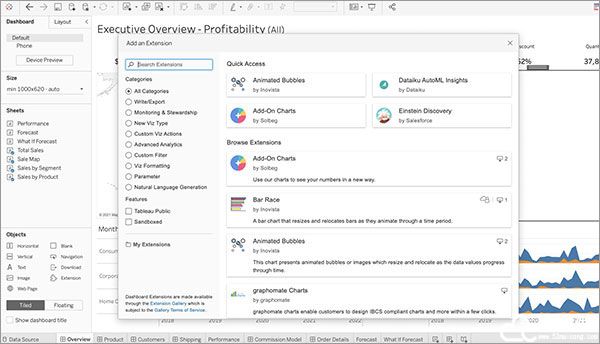 为分析提供动态预测智能,并将 Einstein 预测直接连接到计算字段中。使用现有的基础结构构建、共享和扩展包含动态预测的交互式可视化和仪表板,并使用参数测试新方案。注:适用于Tableau Desktop 2021破解版和 Tableau Server