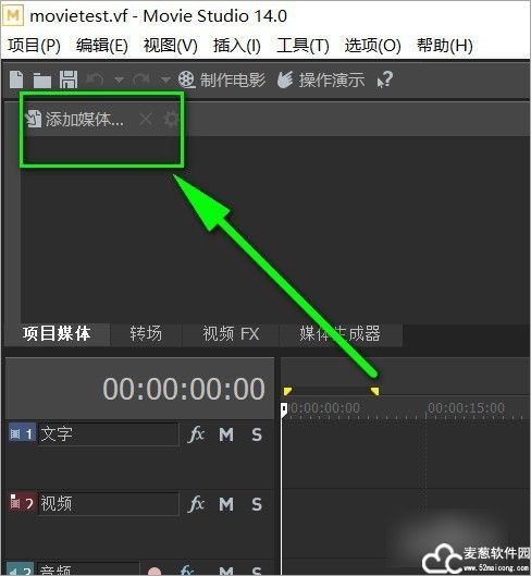 2、然后点击项目面板的“添加媒体”按钮即可开始添加视频了哟
