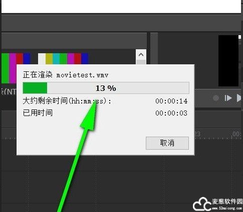 8、现在就是在渲染视频素材了。耐心点去等待视频渲染完成便可以看到编辑好的视频啦