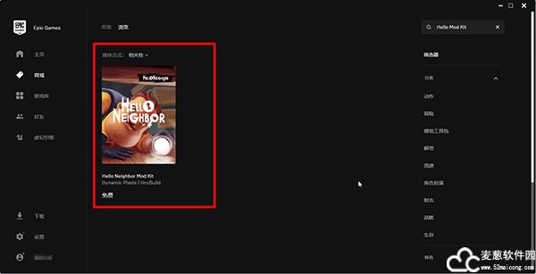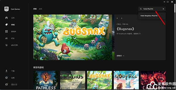 2、下载并安装Epic游戏平台,在商城的右上角中搜索Hello MOD Kit