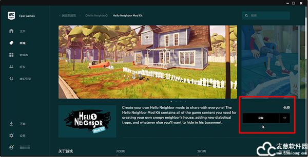 4、点击获取,把它添加至Epic平台的游戏库中
