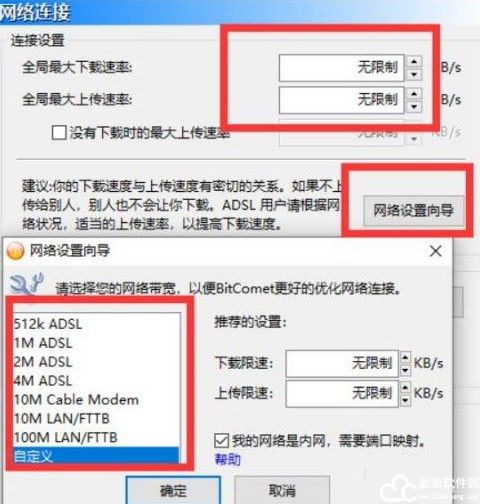 3、再接着根据你的网络带宽选择软件自带的限速设置