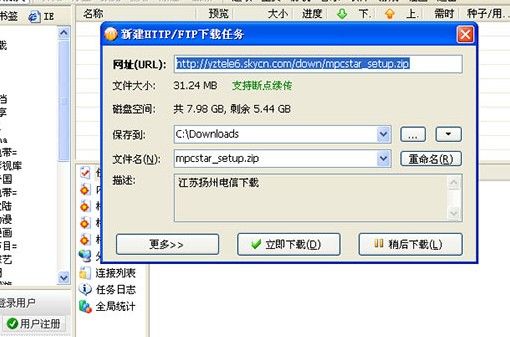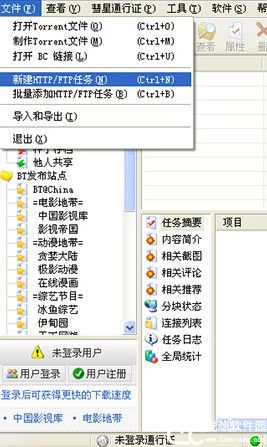5、从主窗口文件菜单,下载HTTP/FTP任务