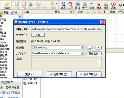 bitcomet破解版怎么下载HTTP/FTP任务直接从浏览器中下载HTTP/FTP任务
