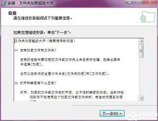 6、如果是临时打开文件夹加密超级大师完美破解版,就会弹出一个“控制板的使用介绍”。先看清楚一下使用方法与功能等。