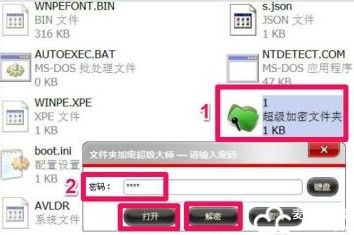 3、加密文件和文件夹的临时解密;加密文件和文件夹解密时输入正确密码选择打开,就处于临时解密状态,使用完毕后文件及文件夹自动恢复到加密状态,不需要再次加密。