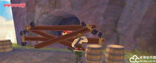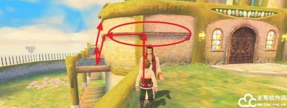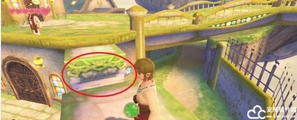 1、进入游戏后,林克从自己的房间中醒来首先我们要从骑士学校的1层大门出去,然后就会看到荷奈尔老师,首先在下方注视一下,然后从旁边的木箱爬上去。如下图红圈位置,只要我们按住冲刺键(B键),就能直接跨过去,并不用按跳跃。