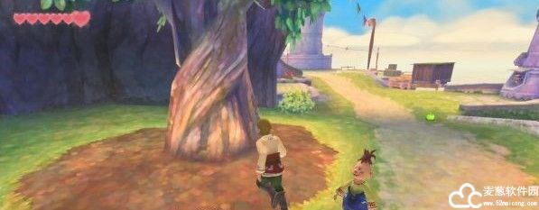 3、接下来去女神像找到塞尔达,然后发现塞尔达的鸟洛夫特不知所踪,林克需要帮忙去寻找洛夫特,首先去地图正下方的广场,图中会看到一个小孩,利用前滚攻击装树可以帮助小孩抓虫子,从这里可以学会所有的树都可以用头装,只要头够铁,就能得宝物。