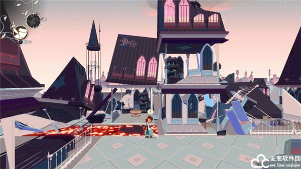 柱子背面去教堂跟女司铎对话后,去大学里左侧先点机器,再回到过去拿;