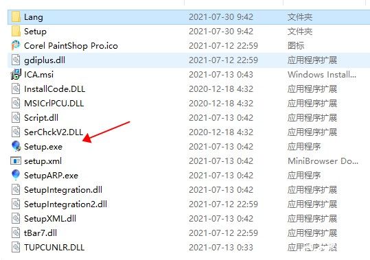 2、下载解压,得到Corel PaintShop Pro 2022破解版源文件,运行setup.exe开始安装