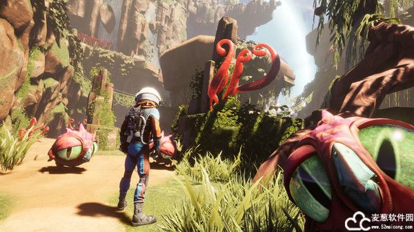 7、另一值得关注的点便是纯手工打造的游戏世界,和其他开放世界沙盒的随机生成地图不同,玩家在星球中的探索并不会无意义和重复,在一些需要动脑筋的环境互动周围,总有你可以利用的资源或者生物